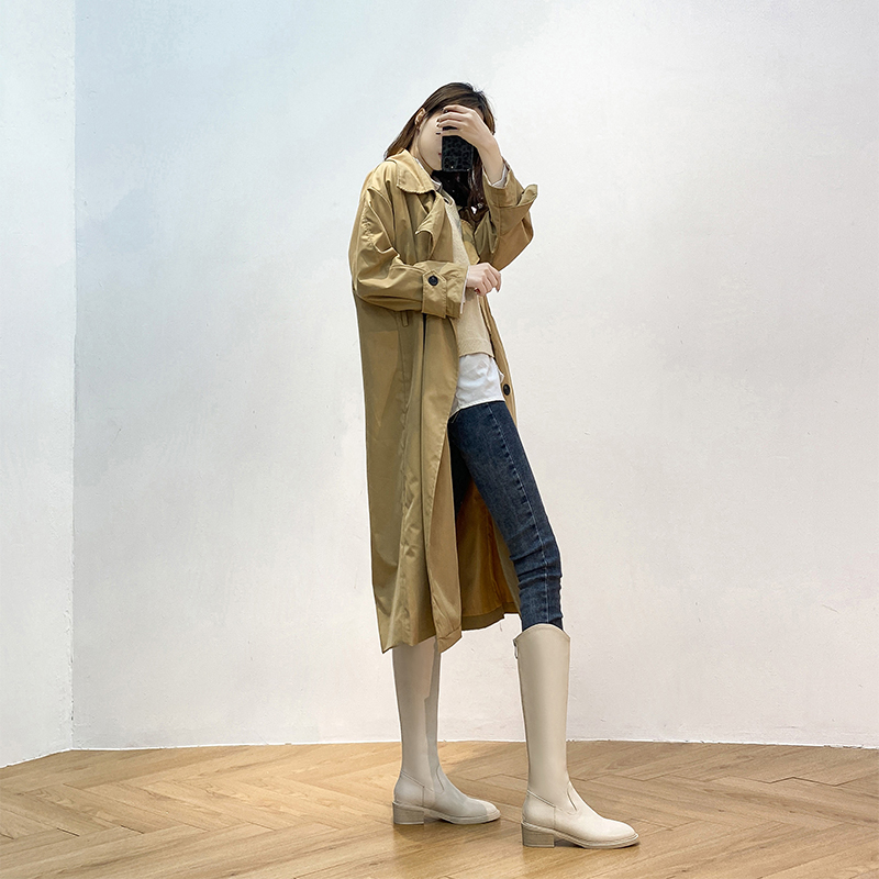 2021 New winter small sub V mouth However knee long boot female midbarrel high cylinder white long cylinder boot riding boot