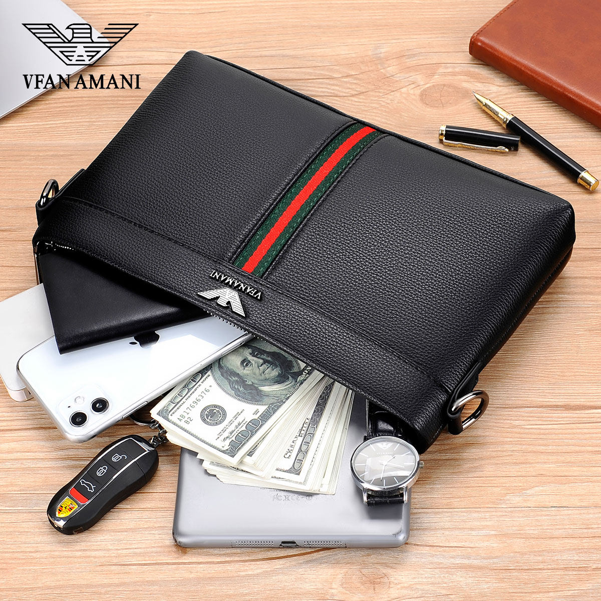 Vifang Amani Men's Hands Bag Handbags Men Genuine Leather Envelopes Bag Hand Briefcase Clips Bag Large Capacity Cow Leather