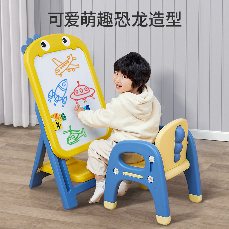 Lemon Yellow Drawing Board + Cute Dinosaur Chair (Send Brush + Board Wipe + Digital Sticker)