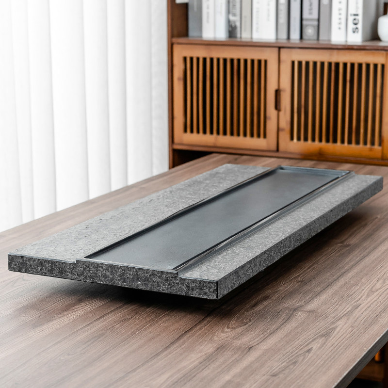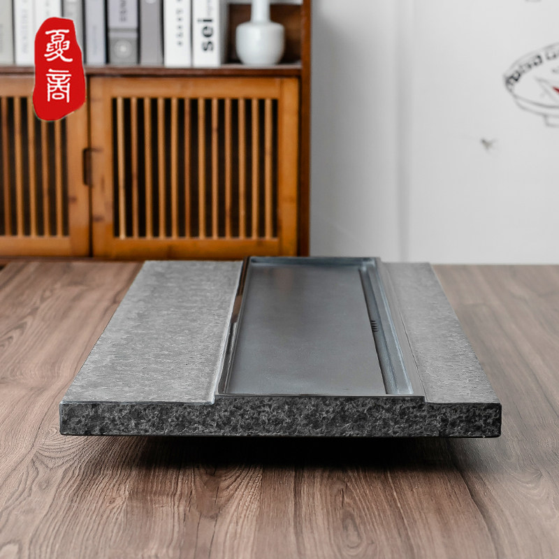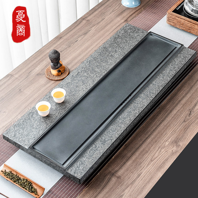 Natural black gold stone tea tray Household simple office stone tea table Whole tea sea Large Kung Fu tea tea tray