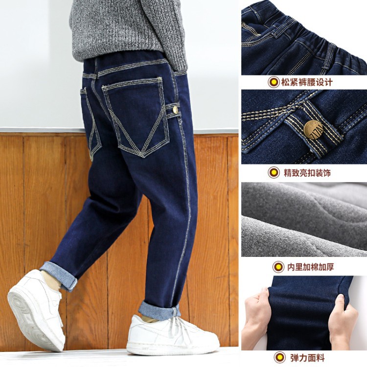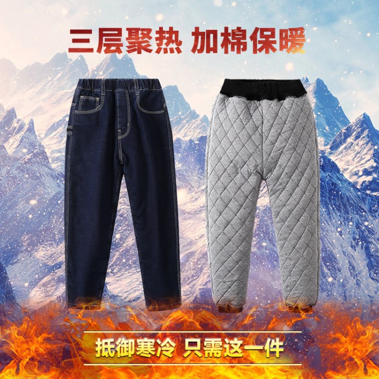 South Korean boy's autumn and winter three-layer thickened cotton pants children CUHK children winter plus suede integrated loose casual jeans