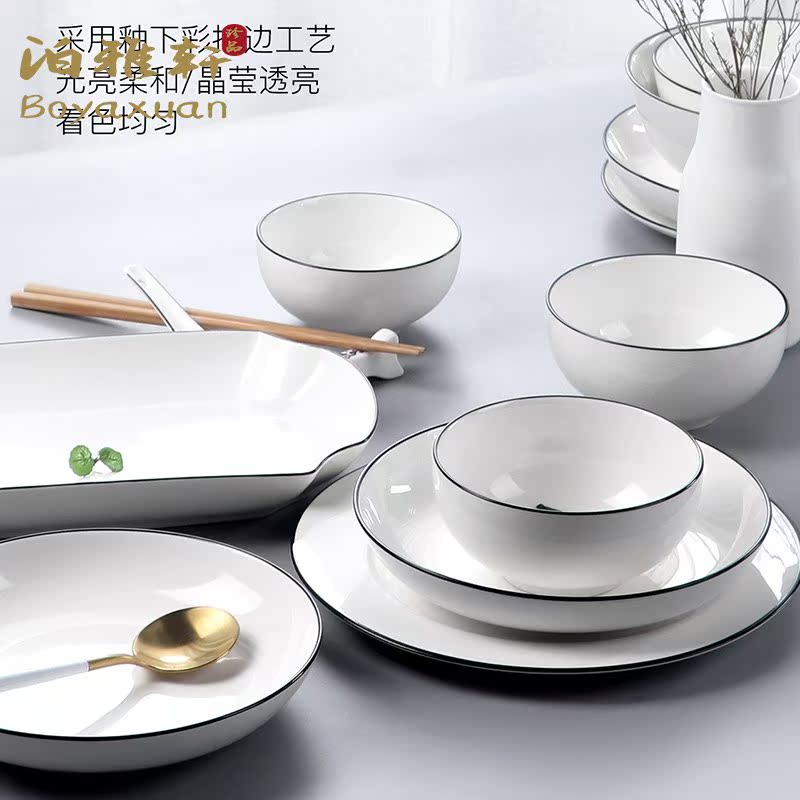 Poya Xuan Bowl suit Home Japanese style light extravagant ceramic cutlery Jingdezhen minimalist modern bowl chopstick tray combination