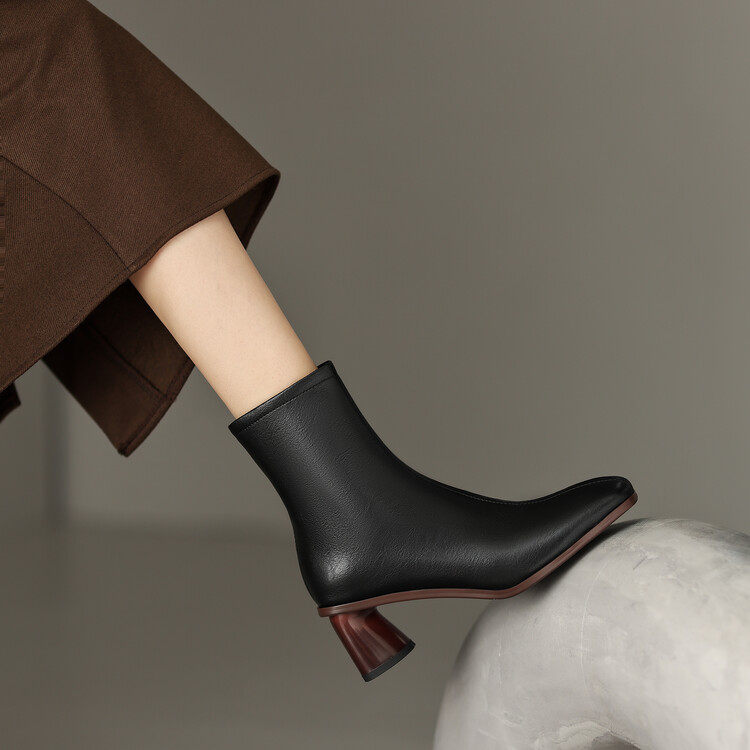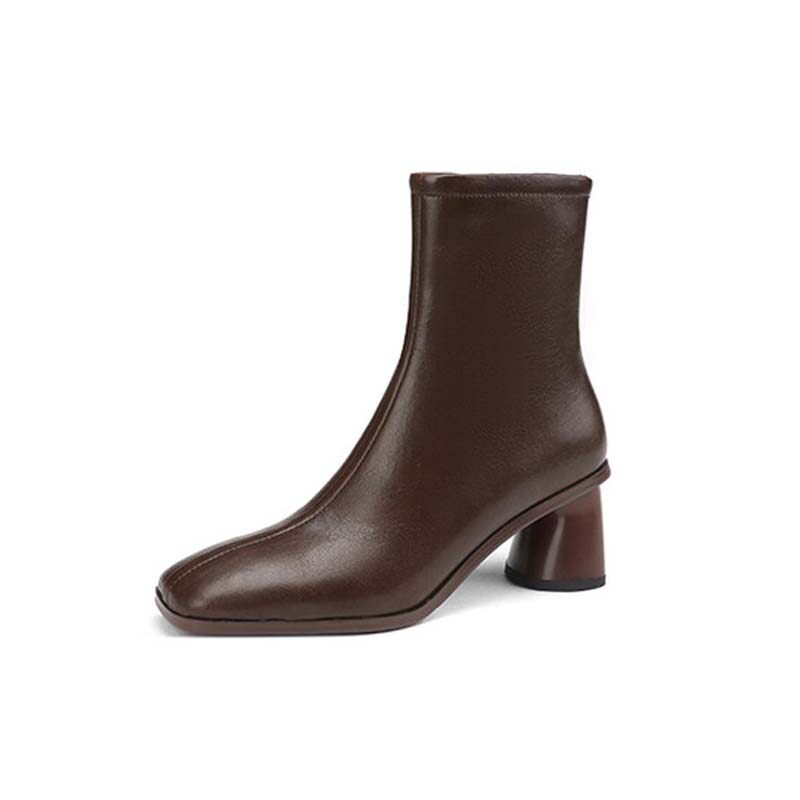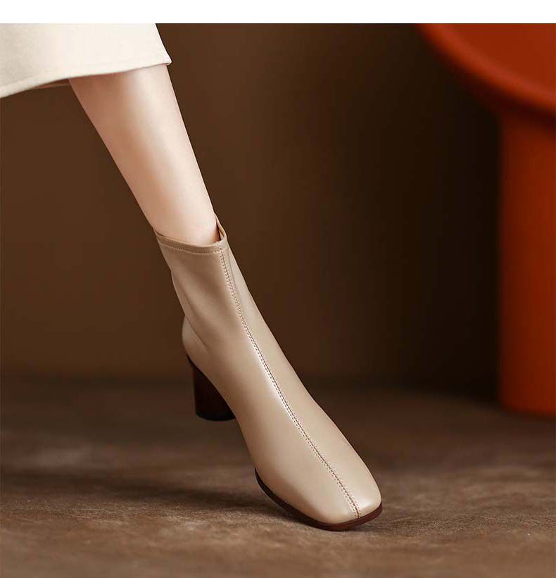 Givenivan simple to beautiful ~ retro style leather square toe thick high-heeled short boots women's new thin boots 5 5CM