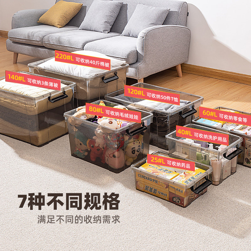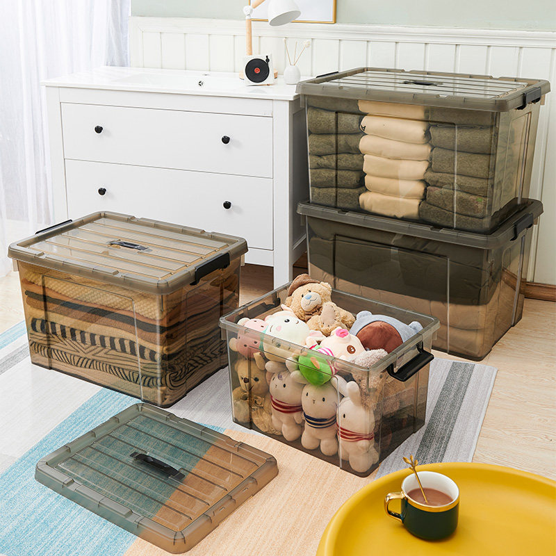King size transparent storage box Plastic finishing box Clothes storage box Household covered clothes storage box thickened