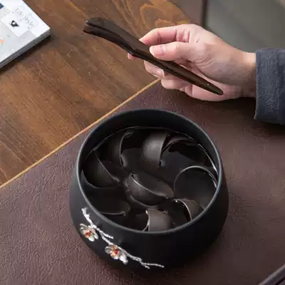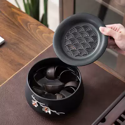 Daduo tea slag tank plum rhyme-Ya black with cover large-scale tea slag tank Lotus-Ya black with cover large-scale tea slag tank lotus leaf-Ya black with cover large-scale tea slag tank plum rhyme-ya black with cover