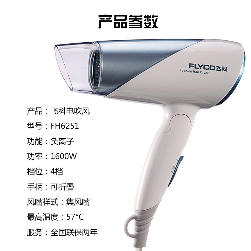Feike 6251 hair dryer Household negative ion hair care 1600W hot and cold air Hotel quick-drying foldable