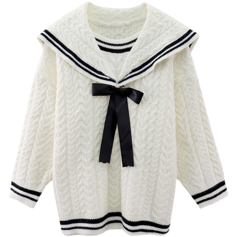 Retro Couple Navy Collar Knitted Sweater Women's 2021 New Lazy Wind Japanese College Wind Round Neck Pullover Top