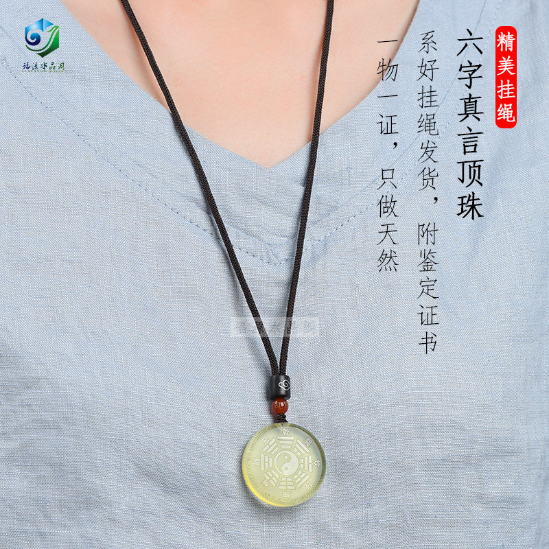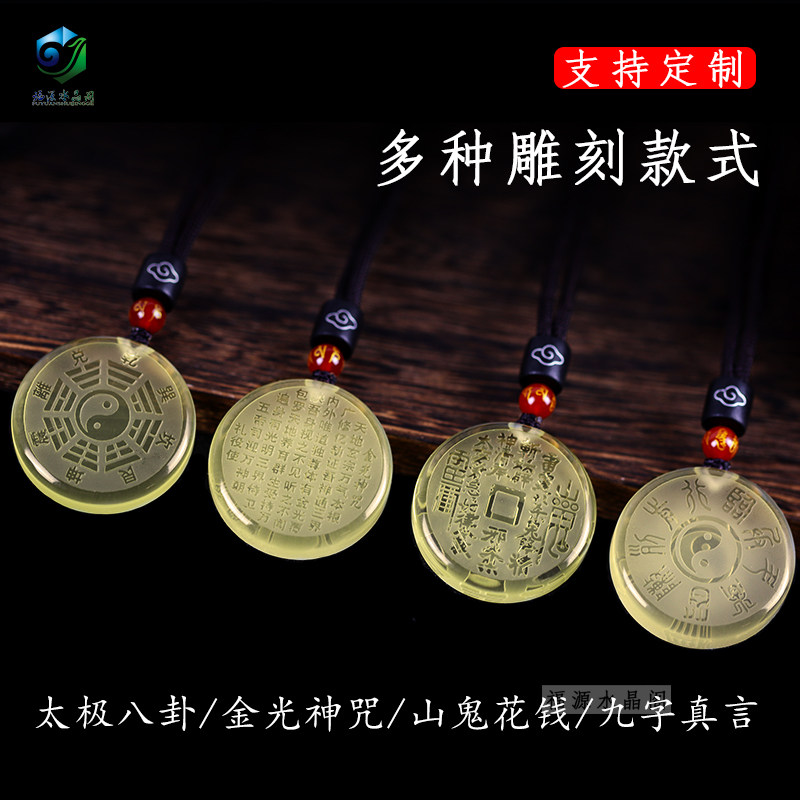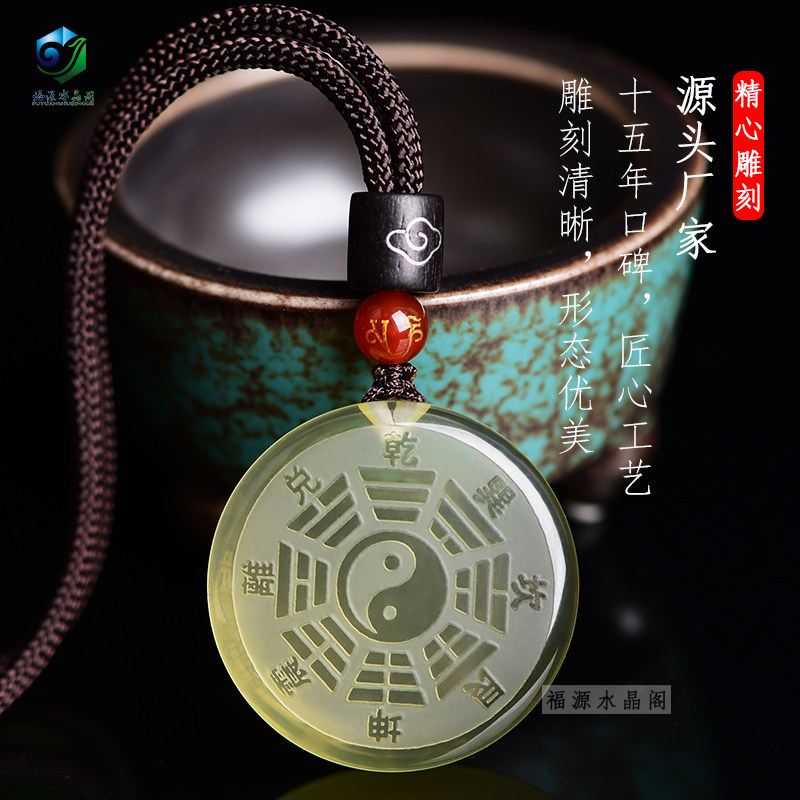 Natural Yellow Crystal Tai Chi Gossip Sign Pendant Retro National Wind Safety Necklace Couple Ornament Pendant Customizable
