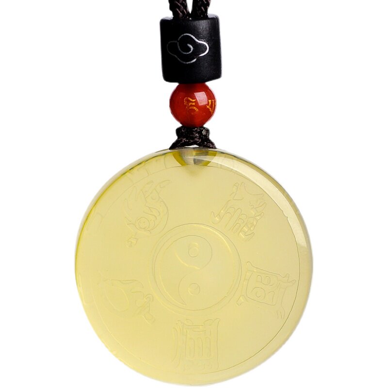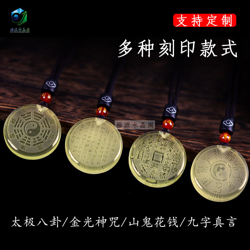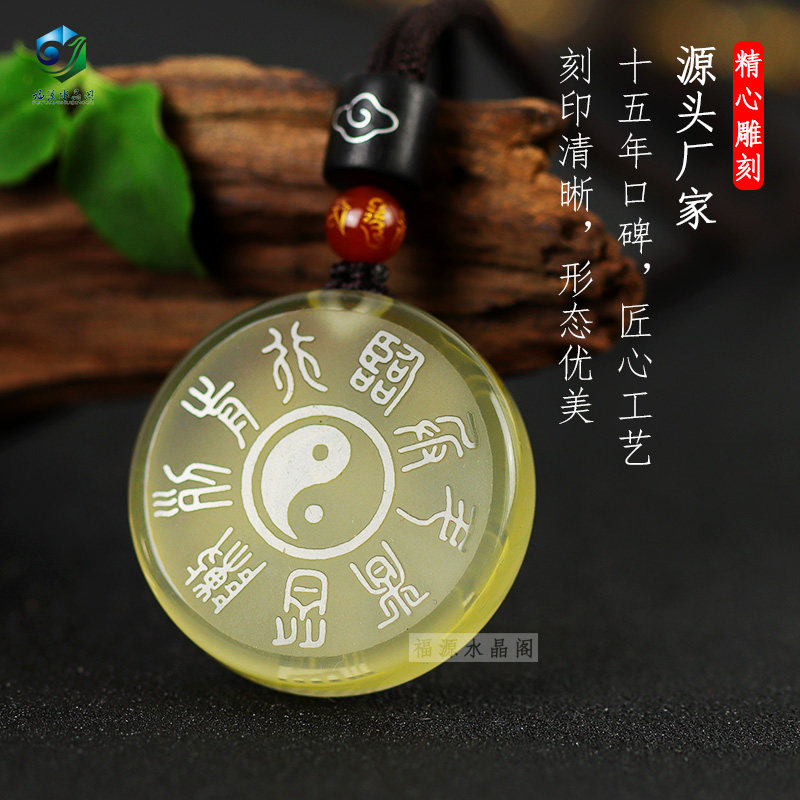 Taoist natural Citrine Evil spirits Pendant Life Year Peace Amulet Nine words Mantra Five Yue true shape figure pendant