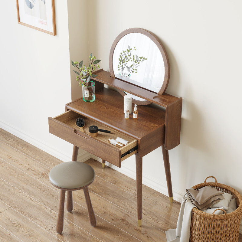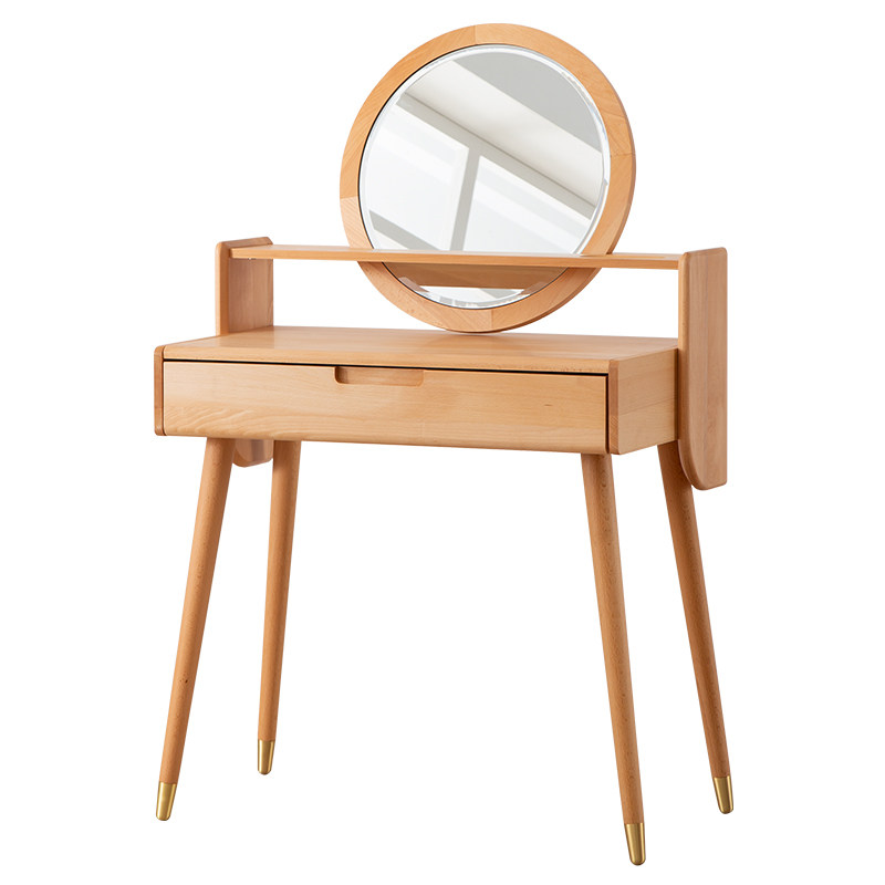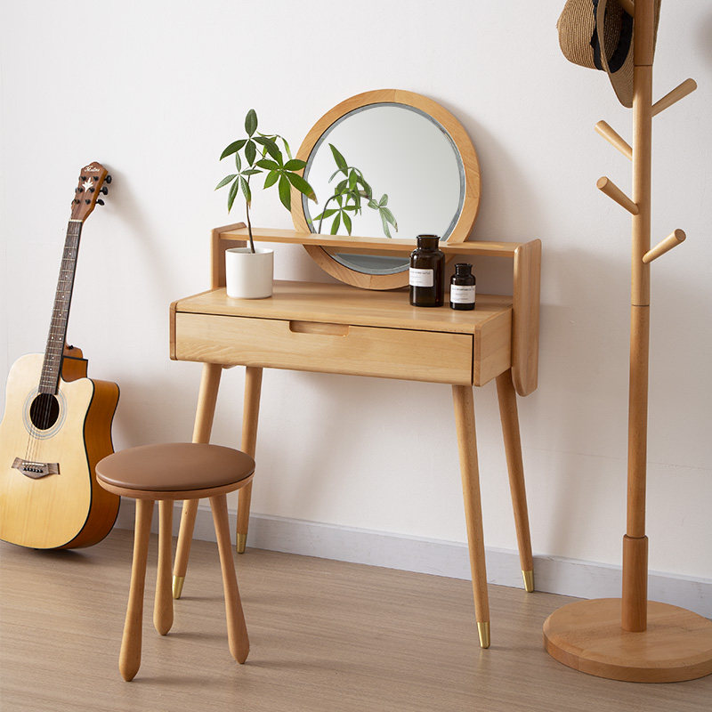 Modern minimalist dressing table beech Nordic style full solid wood dressing table bedroom small apartment dressing table storage storage