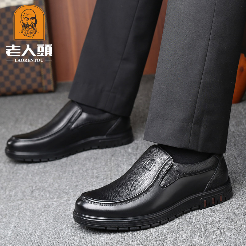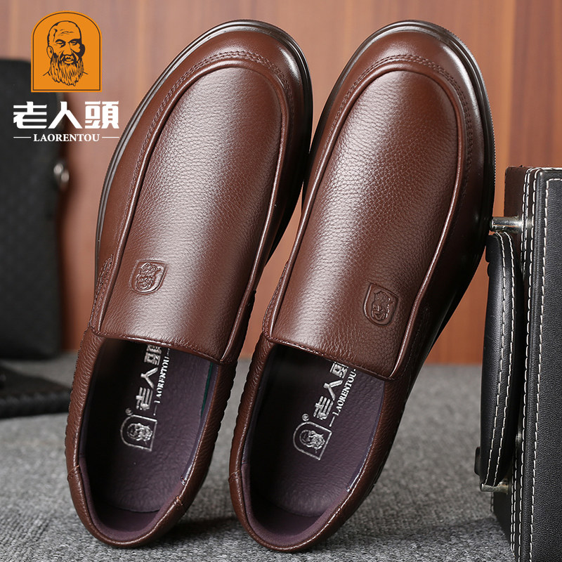 Elderly scalp shoes men's leather autumn middle-aged and elderly dad shoes large size breathable cowhide thick bottom business casual men's shoes