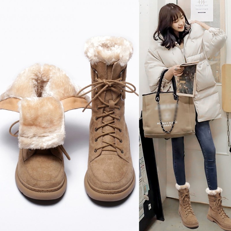 Hong Kong net red mid-tube snow boots women's waterproof and non-slip 2020 new Korean version thick velvet warm cotton shoes Martin boots