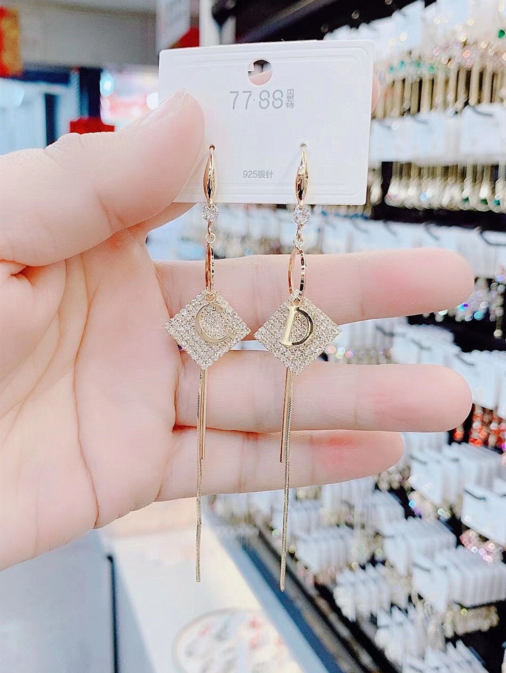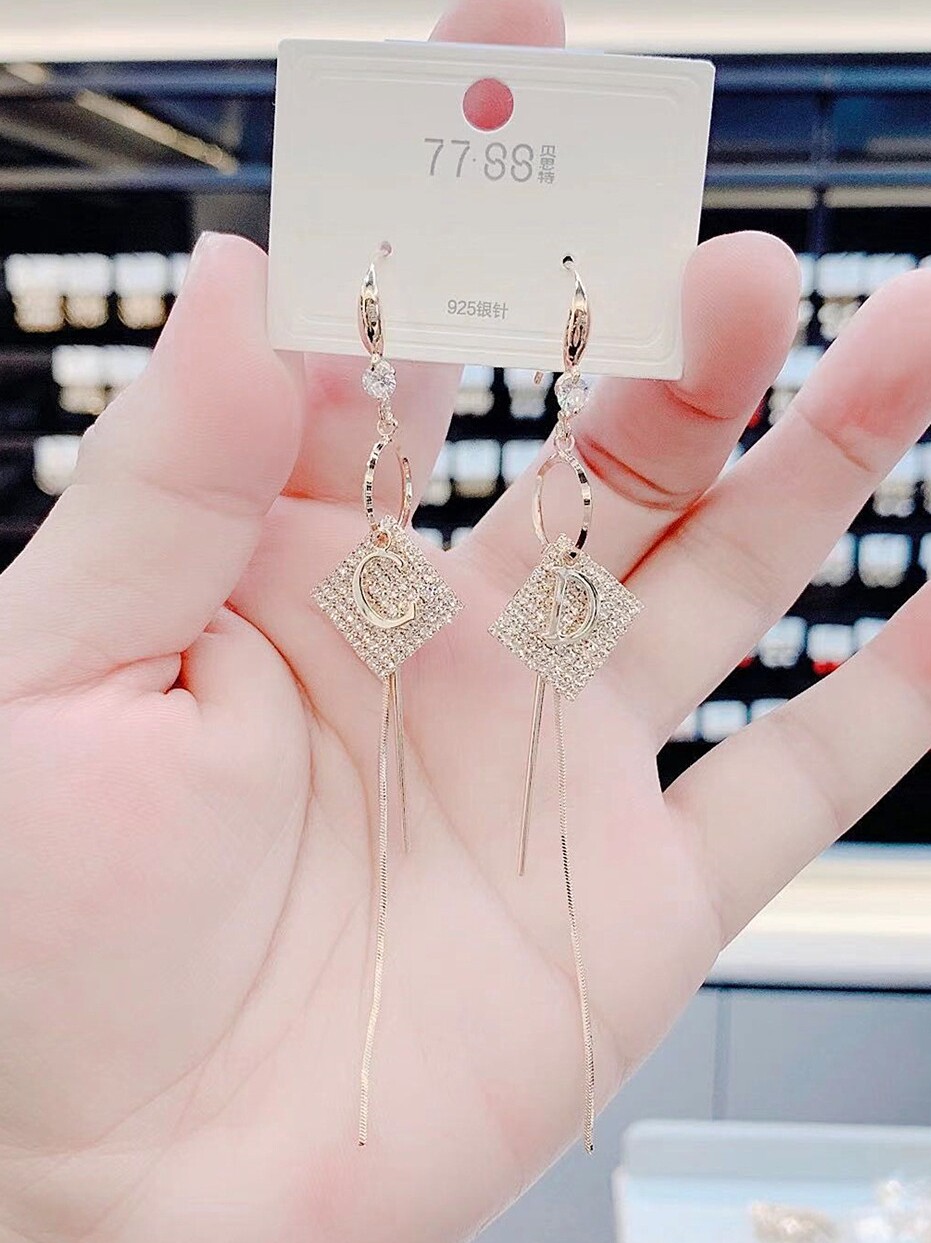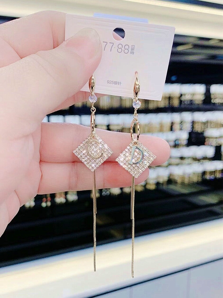 New micro-inlaid letter flow Suearrings net red temperament 100 hitch Yooslap South Korea Senior earbuds with a thin face