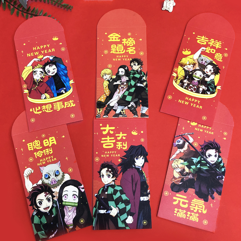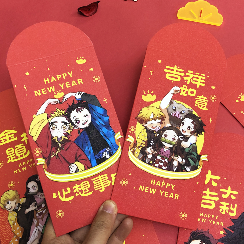 2022 New Year's Red Bauer Japanese Cartoon Ghost's Edged Rim is a Thickened Comic Twice Meta Red Packet Bag
