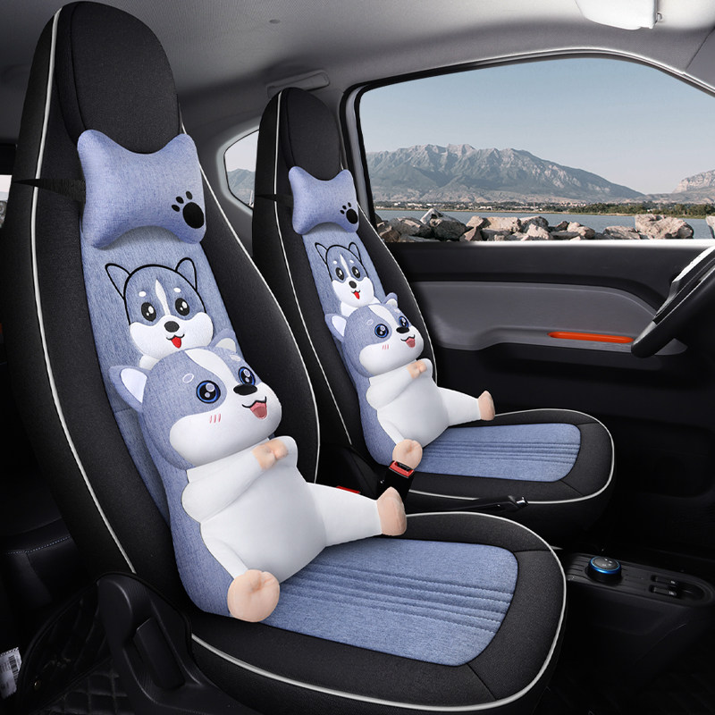 Wuling Hongguang miniEV20 car seat cover linen special custom fabric cartoon four seasons all-inclusive seat cover