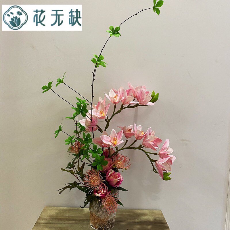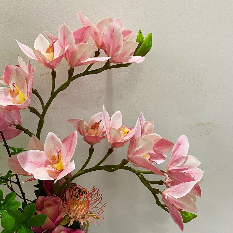 No shortage of flowers overall art flower arrangement set simulation Cymbidium potted home fake silk flower decoration vase flower arrangement