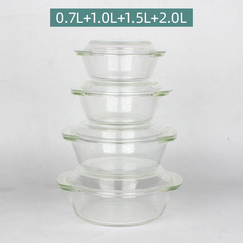 0.7L high borosilicate glass bowl with lid 1.0L high borosilicate glass bowl with lid 1.5L high borosilicate glass bowl with lid 2.0L high borosilicate glass bowl with lid