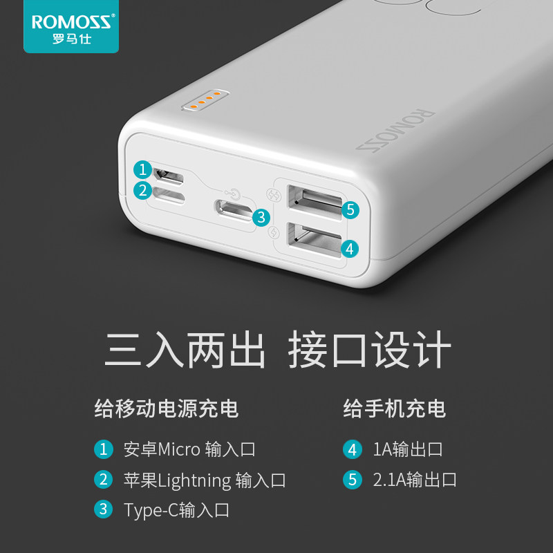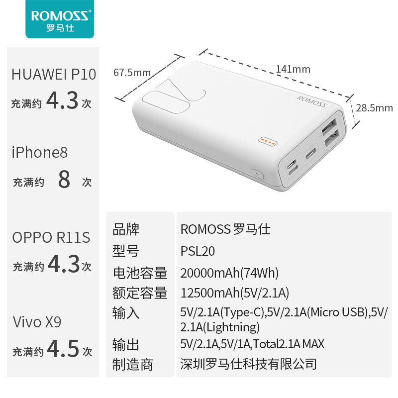 Roman's 20000 mAh action power supply portable large capacity PSL20 suitable for Huawei Xiaomi mobile charging