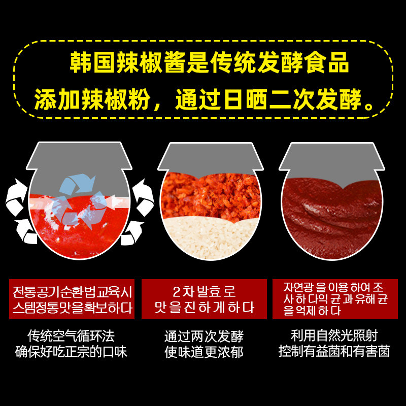 Korean Chili Sauce 1000g (big box!) Limited edition 1500 boxes) Korean chili sauce 500g (+8.7 yuan) Korean chili sauce 500g *2 boxes (rush sales) Korean hot sauce + spicy cabbage 450g *3 sachets (rush sales) Korean hot sauce + spicy fried rice cake 260g * 3 packs (rush sales) Korean hot sauce + turkey noodle sauce 350g (brewing sales) Korean hot sauce + stone pot bibimbap sauce 350g (flush sales) Korean hot sauce + fried sauce noodle sauce 350g (flush sales) Korean hot sauce + Korean barbecue dipping sauce 350g (combination is super cost-effective) stone pot bibimbap sauce + Turkey noodle sauce + fried sauce noodle sauce (combination is super cost-effective) Stone pot bibimbap sauce + turkey noodle sauce + fried sauce noodle sauce + Korean chili sauce