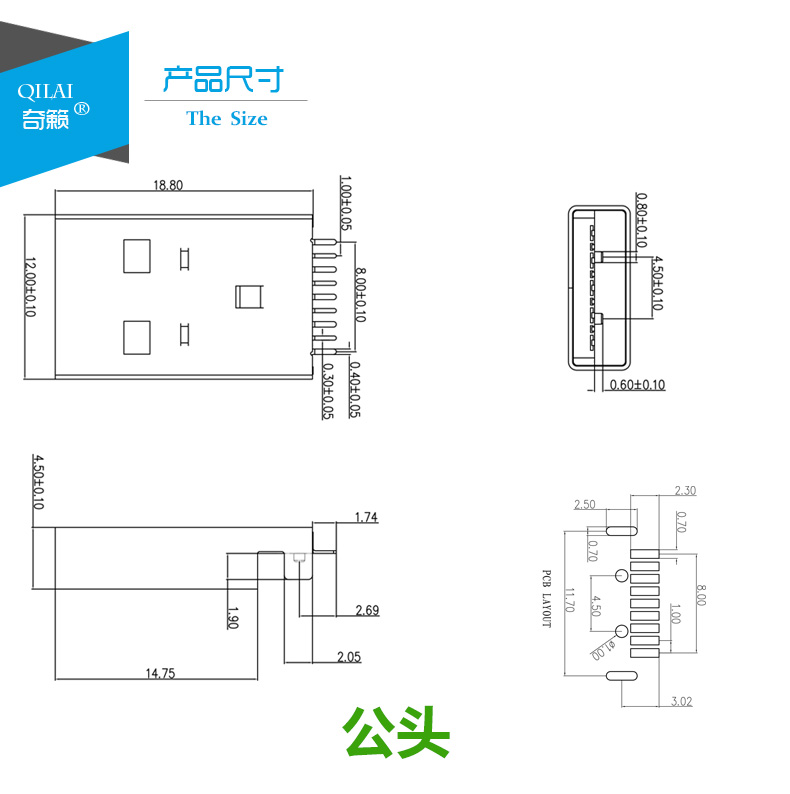 Qizhu brand USB3 0 ATYPE head seat 90 degree bending welding plate straight plug 3 0 A mother seat