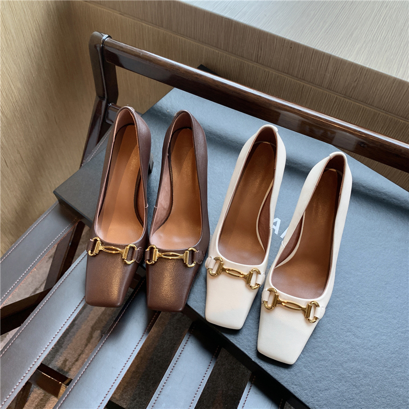 Indus Tree 2021 Spring New Bag Shoes Women Horse Rank Buckle Coarse Heel Heels High Heel Shoe Korean Version Work Shoes