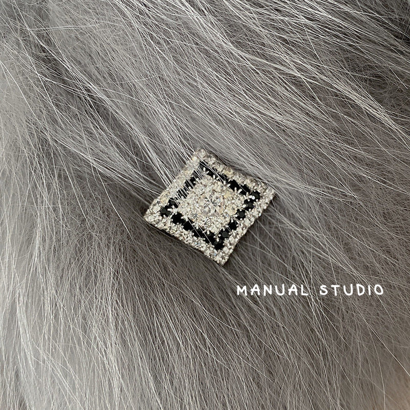 MANUAL STUDIO Profiled Party Black Claw Drill Hand-stitched Sweater Fur Coat Fur Fur Fur Trim Button
