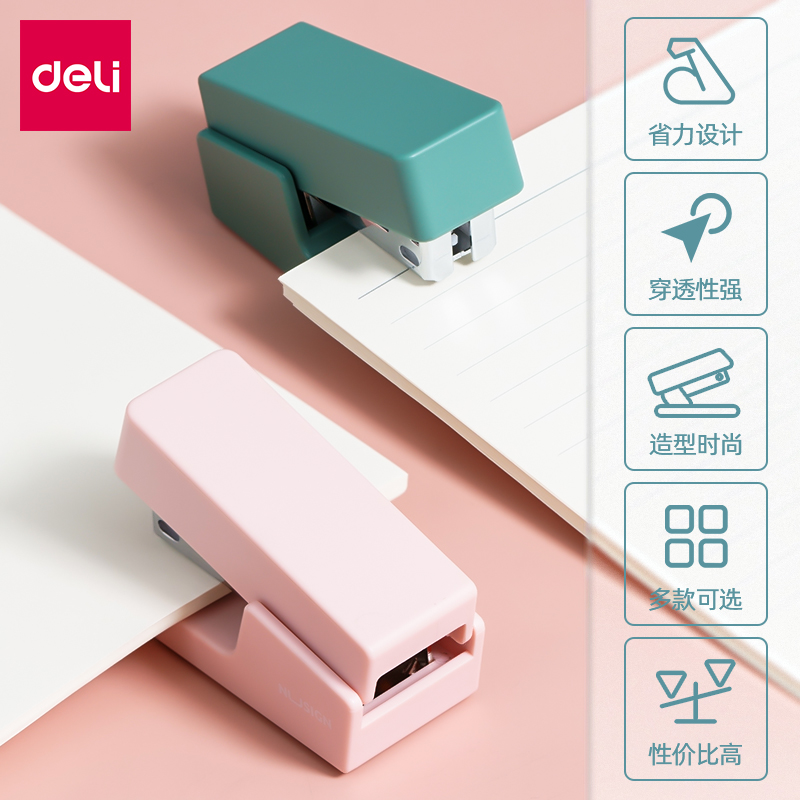 Deli Stapler Mini small stapler No 12 Standard Universal hand-held effort-saving stapler Morandi color stapler Home office Portable stapler Test paper workbook