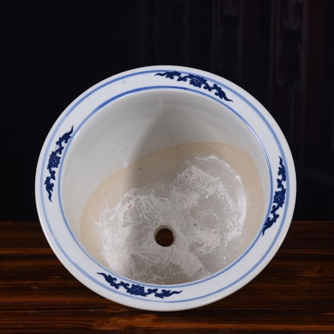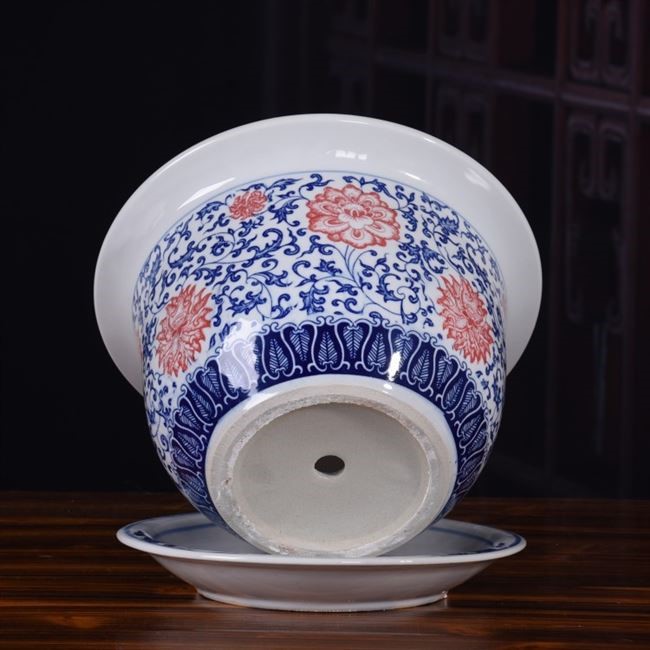 Jingdezhen flower pot ceramic household with pallet indoor simple blue flower porcelain green plant large garden flower pot