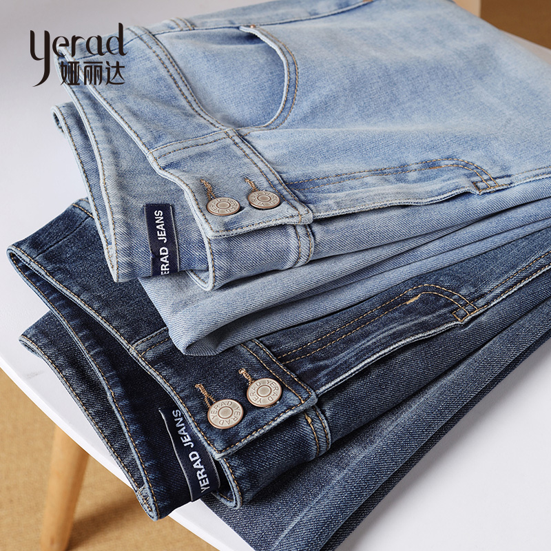 Yalida denim cigarette pipe pants women's elastic self-cultivation high waist nine-point pants 2022 early autumn new slim pencil pants women