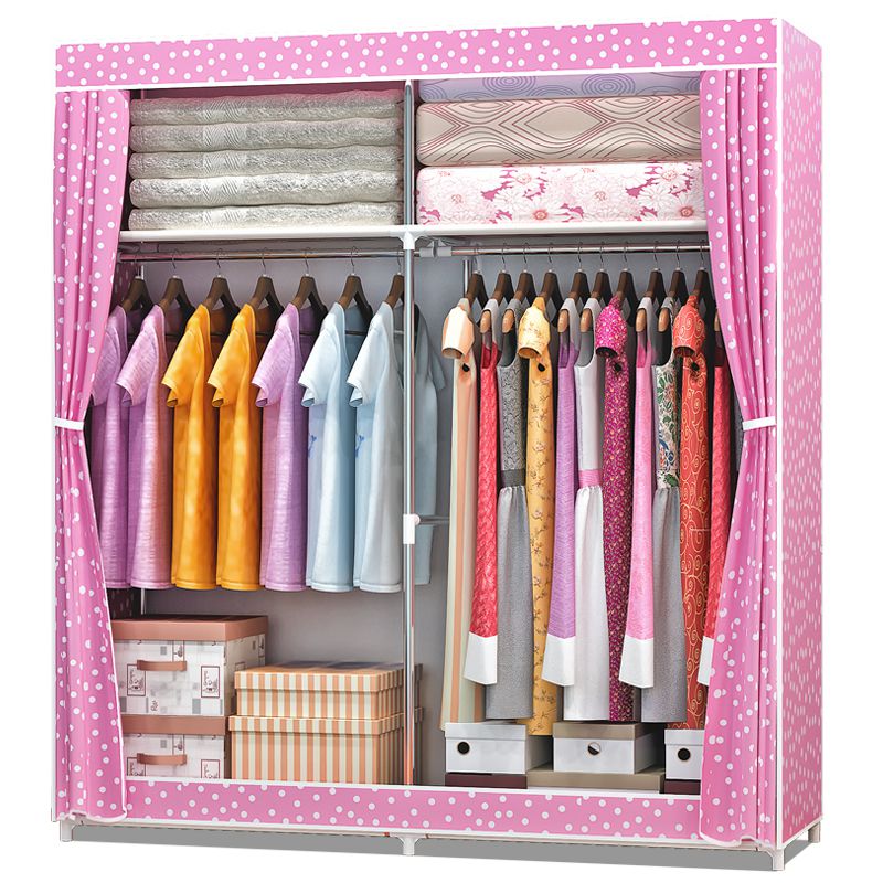 Wardrobe simple cloth wardrobe steel pipe bold reinforcement and thickening modern minimalist home bedroom hanging wardrobe for rental room