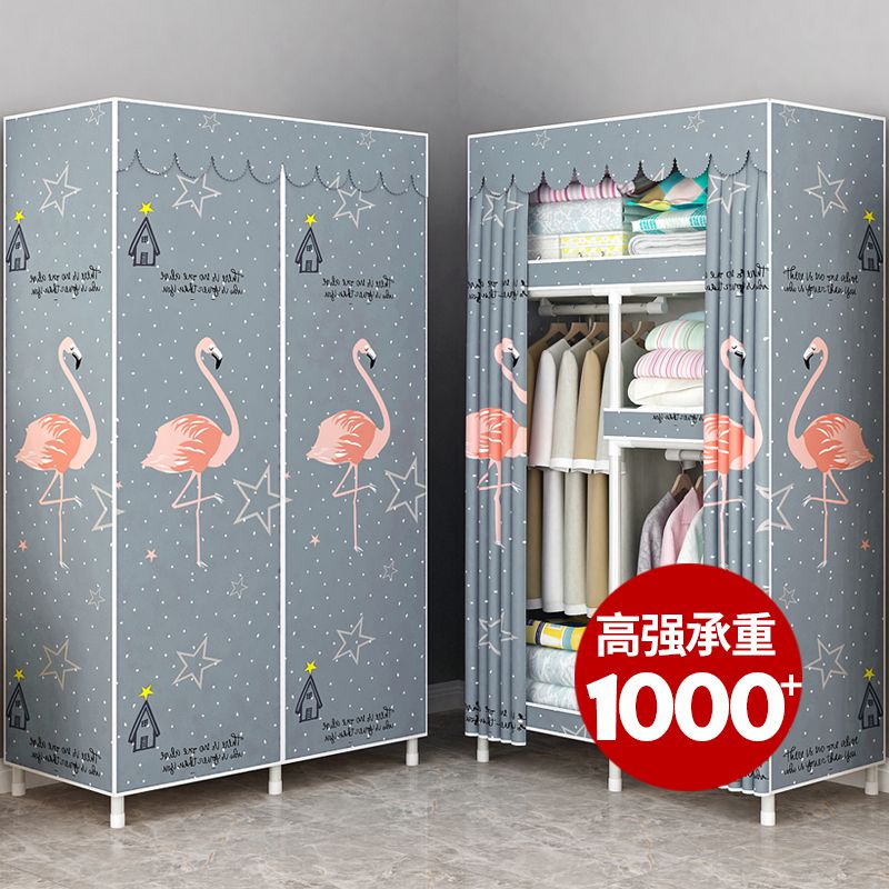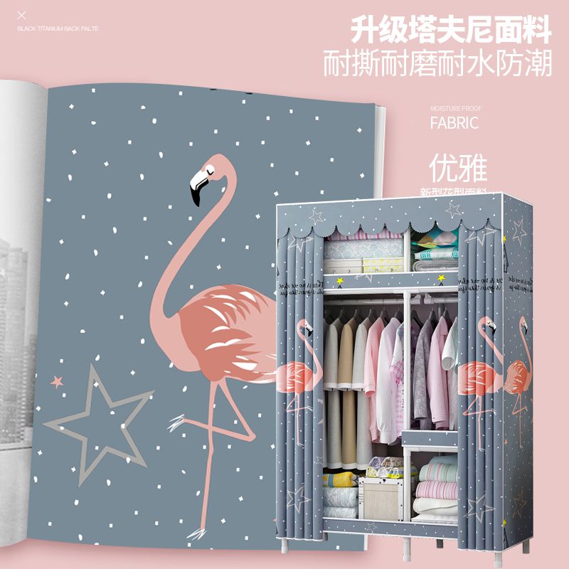 Dormitory small wardrobe steel tube bold reinforcement simple assembly fabric storage cloth wardrobe single all-steel rack hanging wardrobe