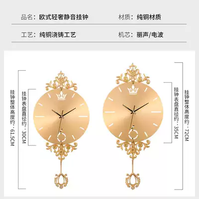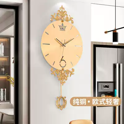 European pure copper wall clock home American light luxury simple creative atmosphere light luxury modern living room silent quartz clock