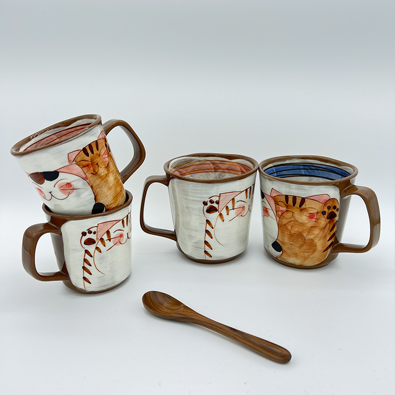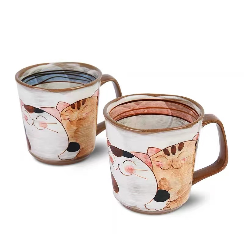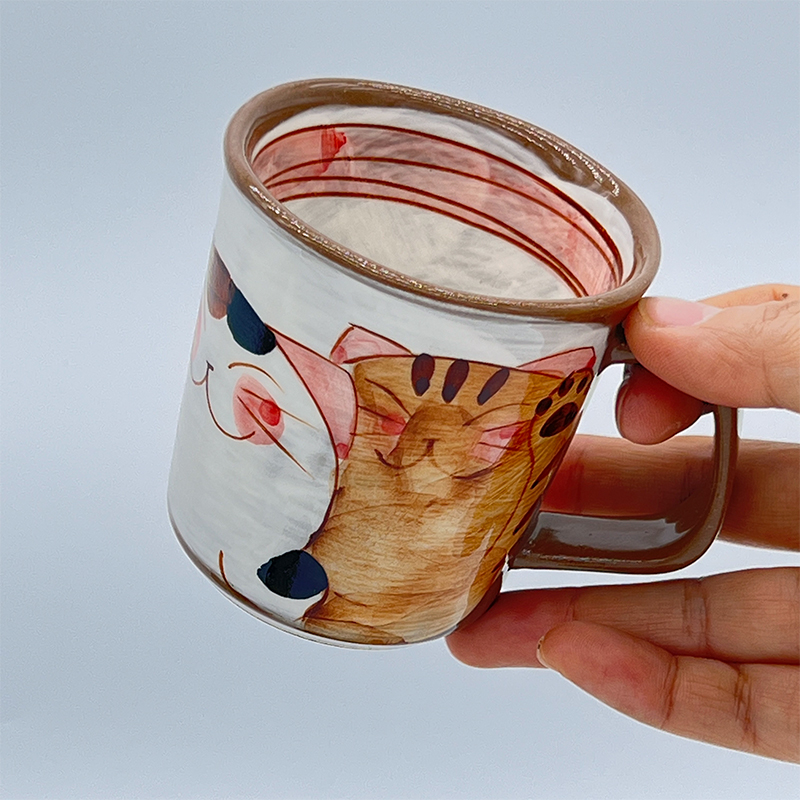 Spot Japan Import Pozzo See Burnt Cute Fu Cat Coarse Ceramic Mark Cup Hand Painted under Painted Coffee Cup
