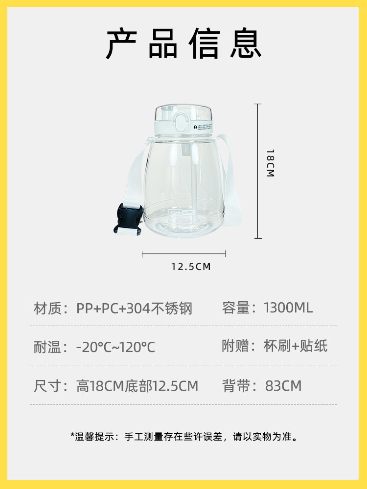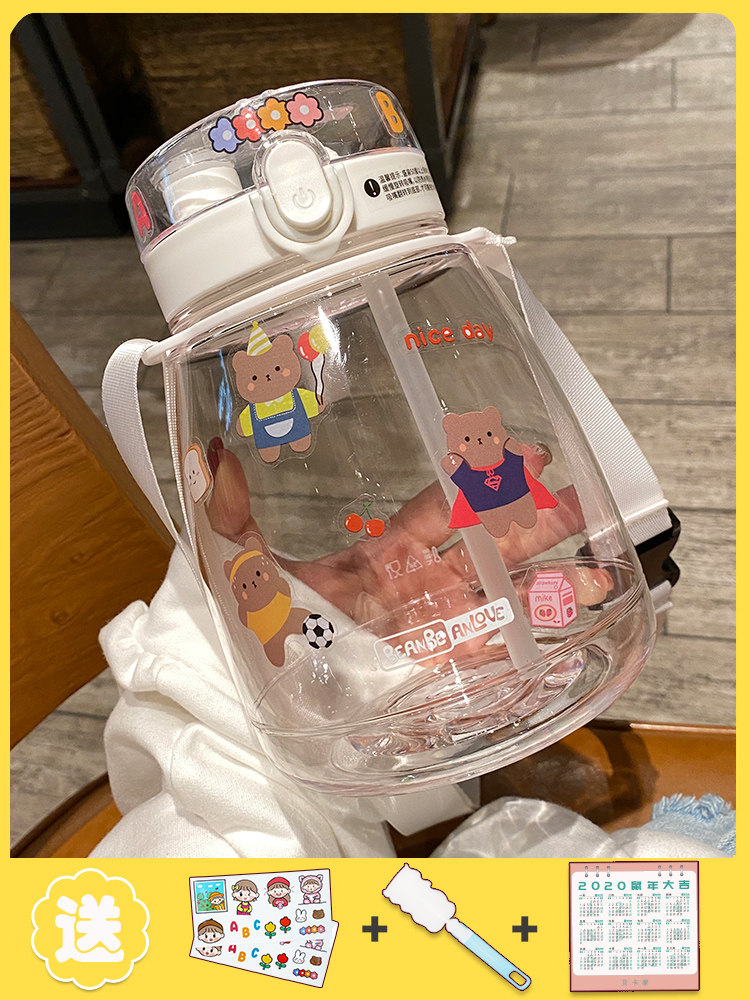 Large capacity water cup large high temperature resistant straw cup adult anti-fall cup children portable plastic sports kettle outdoors