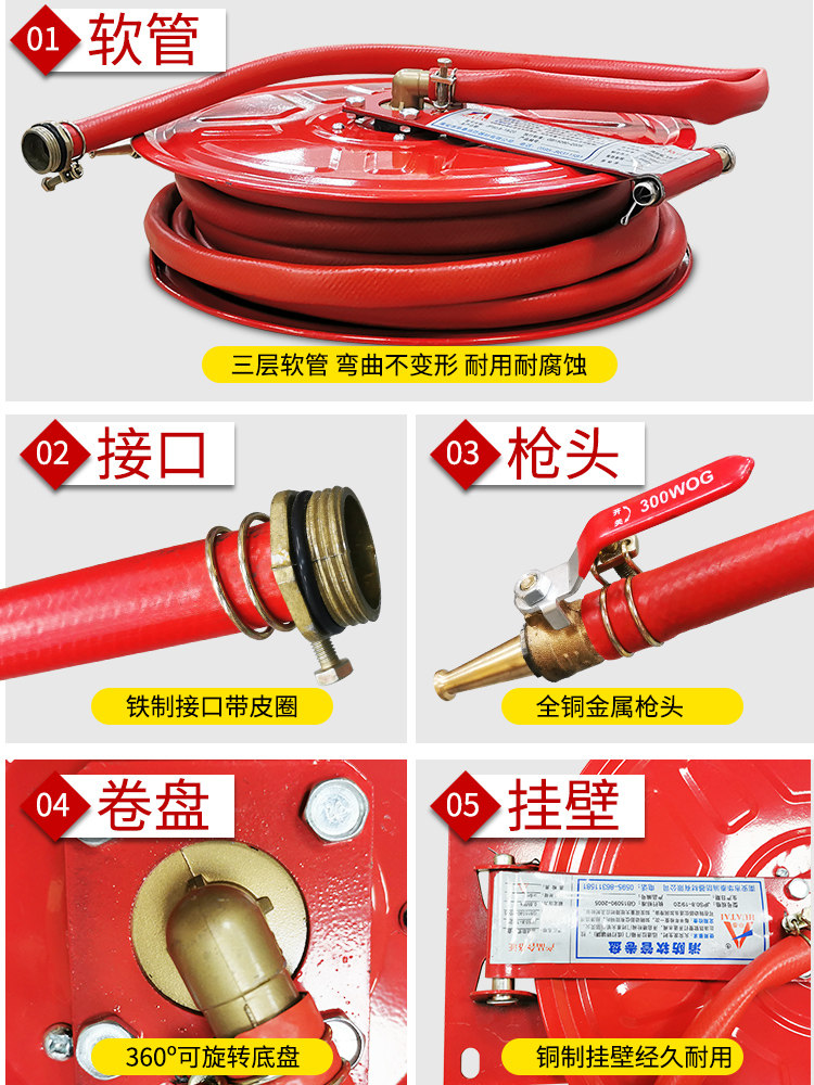 Red reel 20 meters Feeding hanging plate + water gun head Red reel 20 meters + ball valve Feeding hanging plate + water gun head Red reel 25 meters Feeding hanging plate + water gun head Red reel 25 meters + Ball valve Feeding hanging plate + water gun head Red reel 30 meters Feeding hanging plate + water gun head Black pipe reel 20 meters Feeding hanging plate + water gun head Black reel 25 meters Feeding hanging plate + water gun head Black thickened reel 20 meters Feeding plate + water gun head Black thickened reel 25 meters Feeding hanging plate + water gun head Black thickened large reel 20 meters Feeding hanging plate + water gun head Black thickened large reel 20 meters Feeding hanging plate + water gun head Black thickened large reel 25 meters Feeding plate + water gun head Fire reel box Default right open Single reel red pipe 20 meters (single tube)
