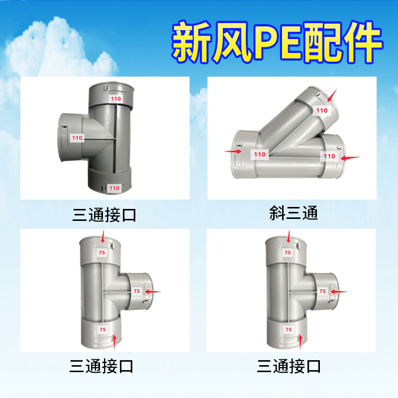 New air system PE pipe fittings PE round pipe environmental protection special PE pipe three - way three - way tilt