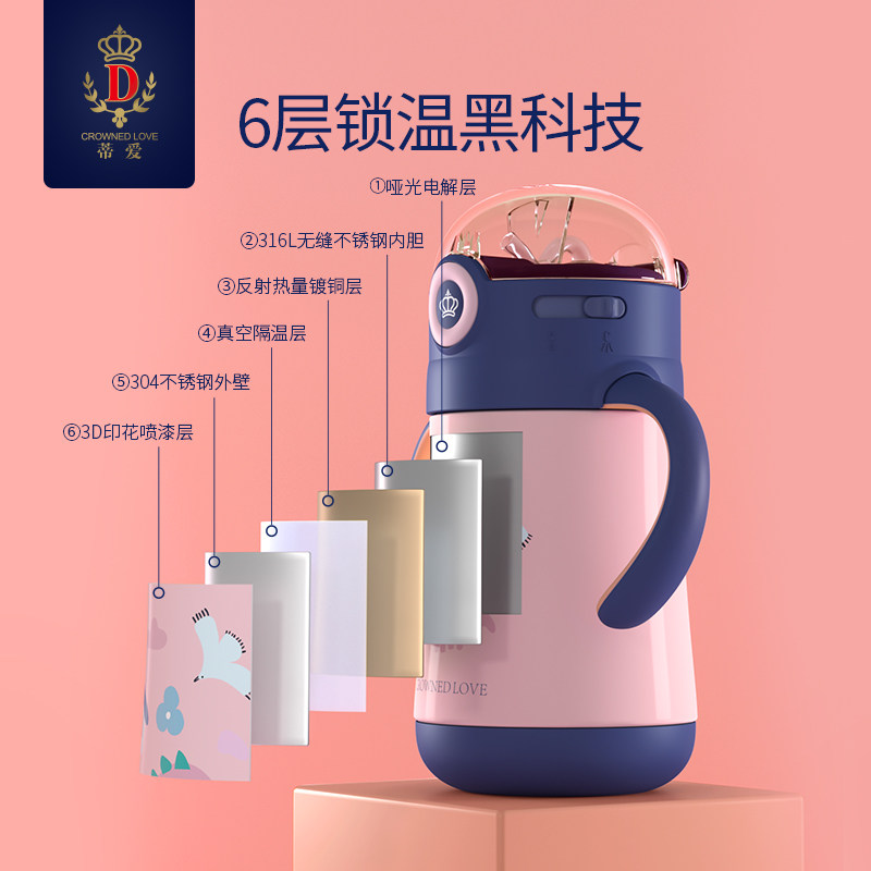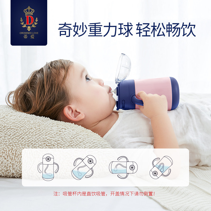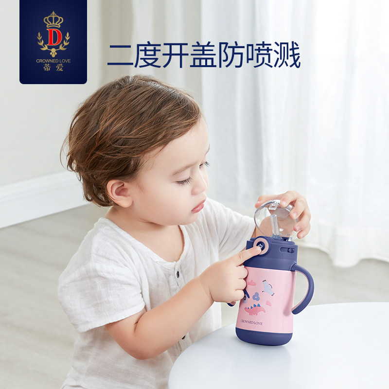 Tiai children's thermos cup with straw baby drinking water cup baby portable thermos large capacity multi-functional cup