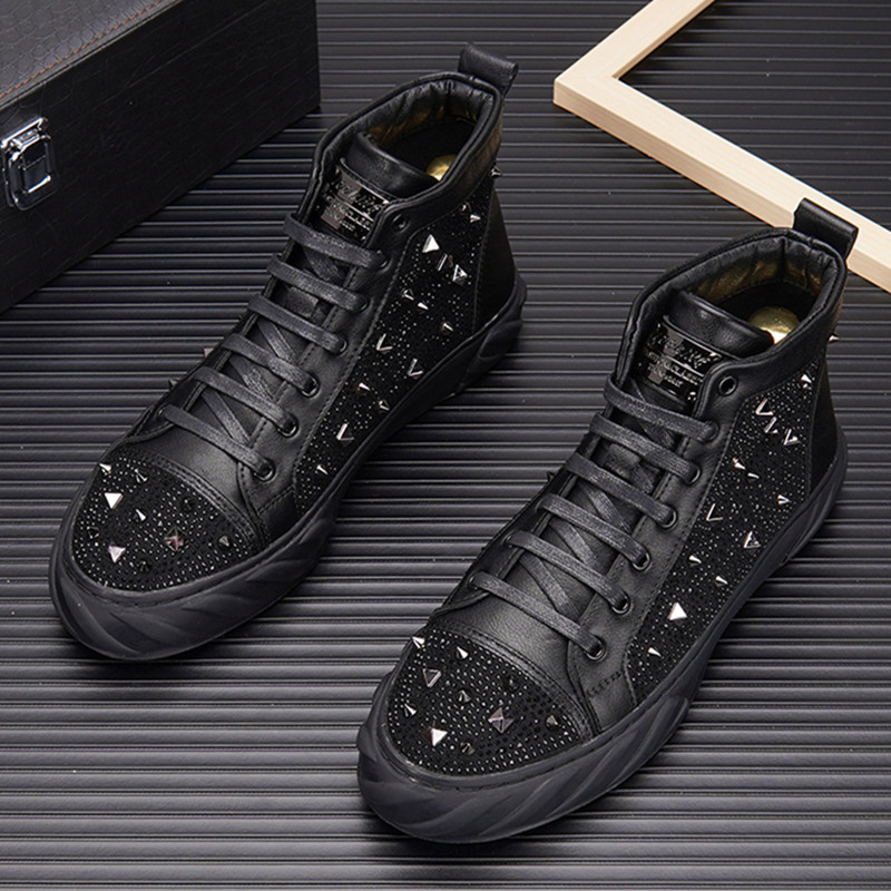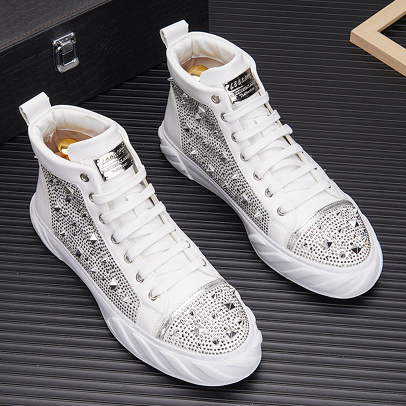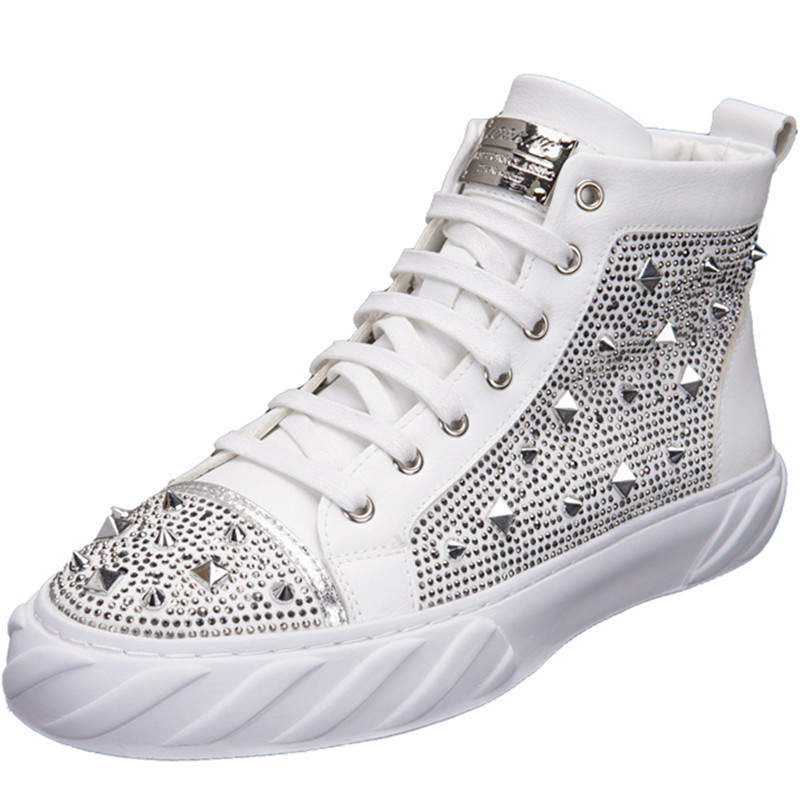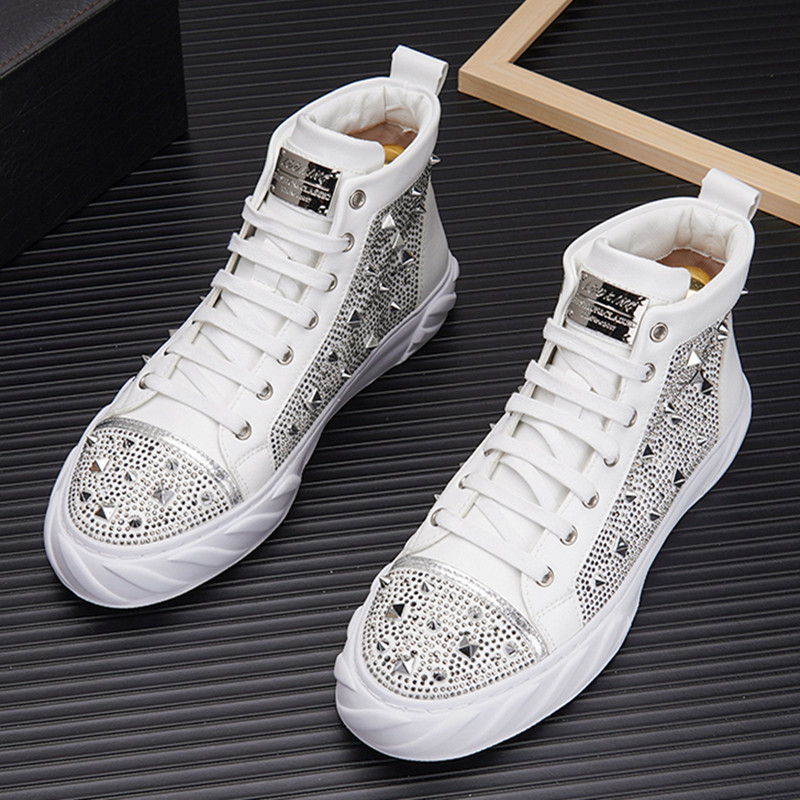 rivet shoes men's shoes 2022 spring and autumn new white high-top sneakers trend korean style trendy men's martin boots