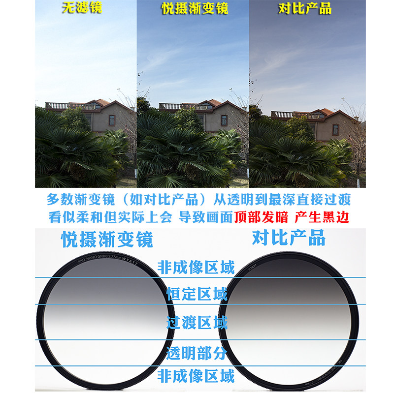 Yue photo medium gray gradient mirror 67 72 77 82mmgnd glass medium gray soft light-reducing round single-eye Jani general