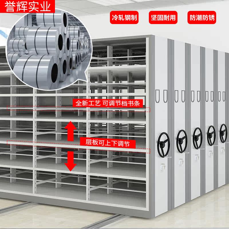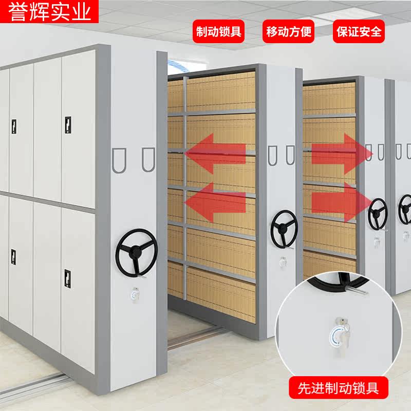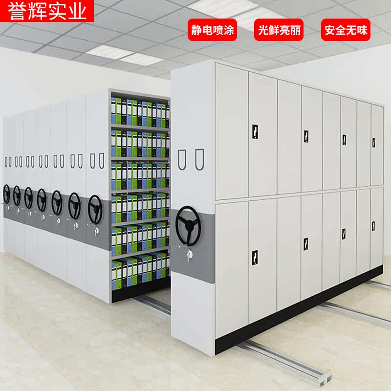 Intelligent mobile dense rack filing cabinet custom hand-cranked electric floor track data rack fireproof double-sided file cabinet