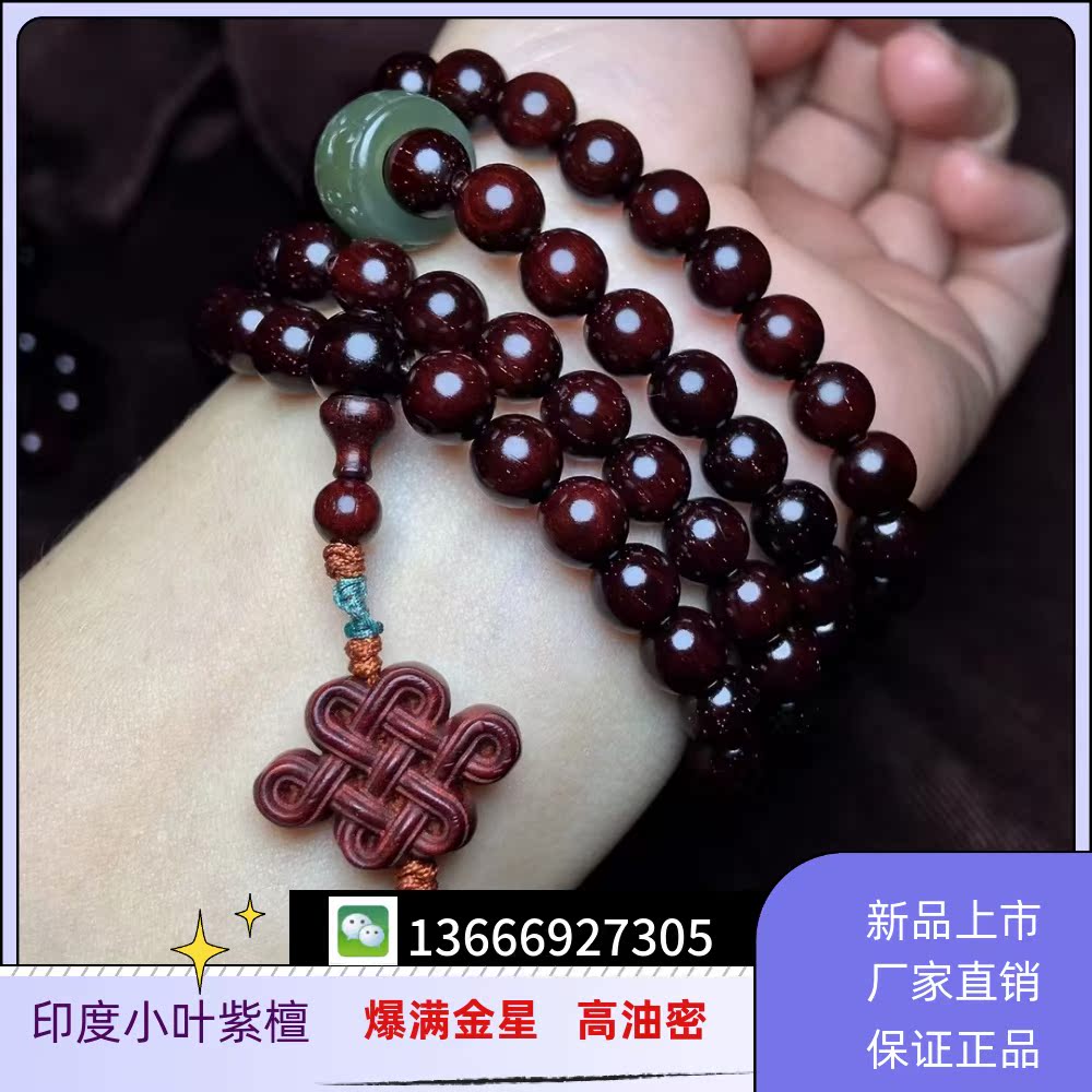 Indian small leafy purple sandalwood detached house old material Buddha beads hand strings Venus High oil dense 0 7 Candida beads 108 mud material glass