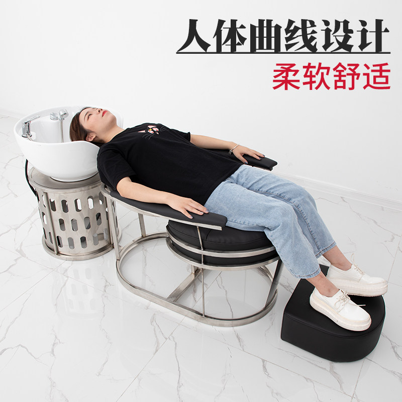 Net Red Shampoon Bed Rational Shop Special Flat Lying Hair Salon Special Beauty Hair Stainless Steel Half Lying Deep Basin Flush Bed
