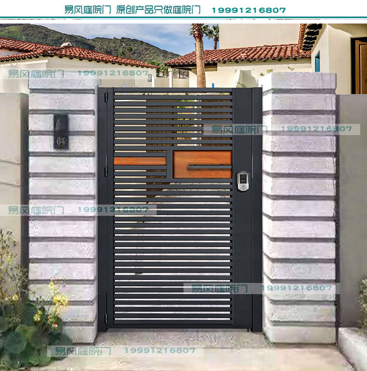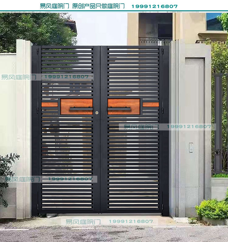 Wood grain aluminum alloy yard door electric door open door villa door flower same door simple single open door