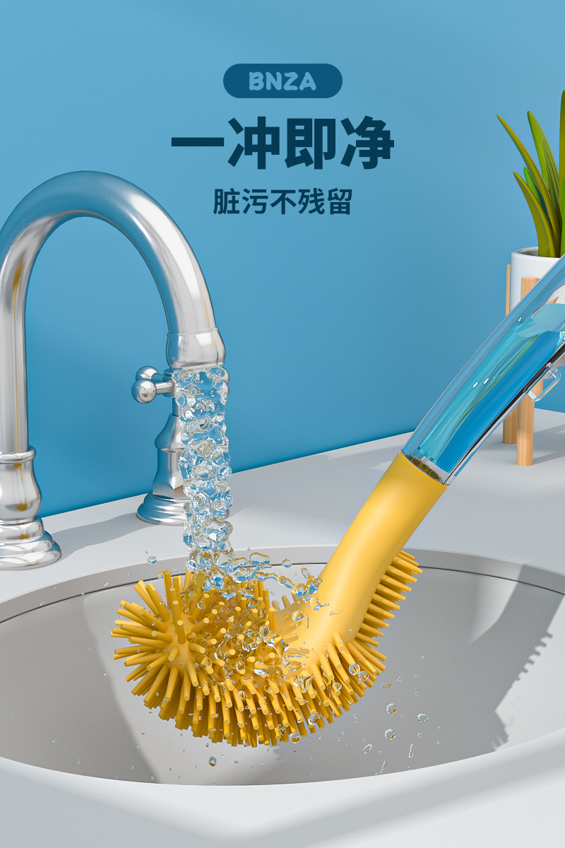 Silicone liquid toilet brush no dead end home toilet wall hanging type supporting toilet liquid free punching wall hanging artifact
