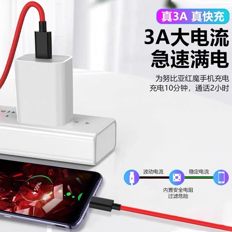 Applicable Red Magic 3s Data Line 30W Watt PD Fast Charged Nubia Red Magic 5S Charging Line 55W Original Dress Double Type-C Red Magic 6pro Mobile Phone Mars Flash Charge 5GROGz