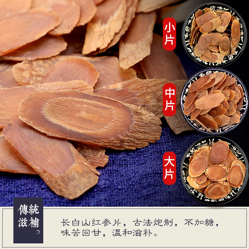 Changbaishan sugar-free red ginseng slices 500g ginseng slices Northeast ginseng slices Red ginseng slices soup soak water