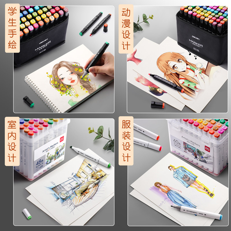 Deli marker 48 color oil set color double head student with 24 colors 36 colors children color pen primary school students kindergarten non-toxic watercolor painting pen art student special set 60 colors 80 colors