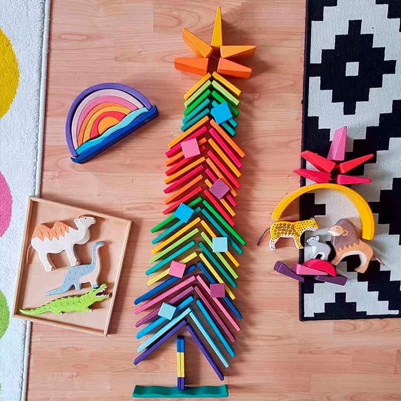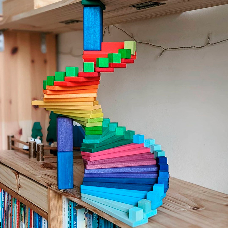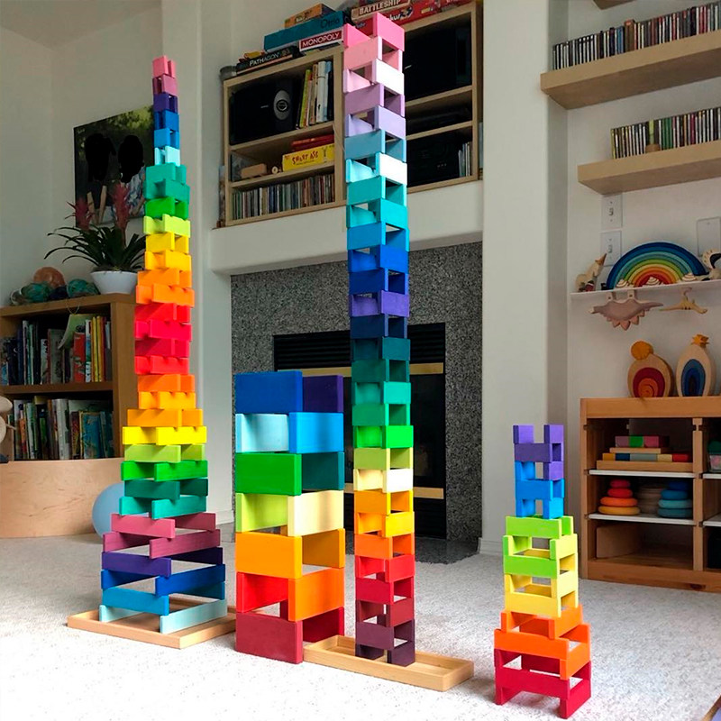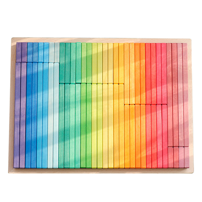 Basswood rainbow building blocks building strip Grimm niche puzzle building toys German solid wood nic64 long straight board
