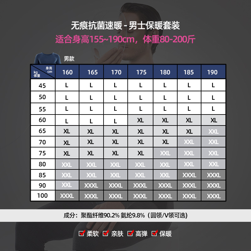 Arctic velvet incognito autumn clothes Autumn pants suit men's self-heating constant temperature warm underwear plus velvet De thickened antibacterial