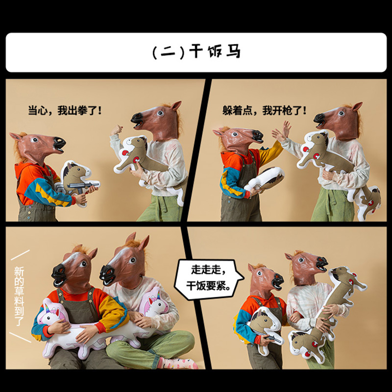 Crooked melon produced sand sculpture punching horse pillow funny cushion spoof whole trick toy to send friends birthday strange gift